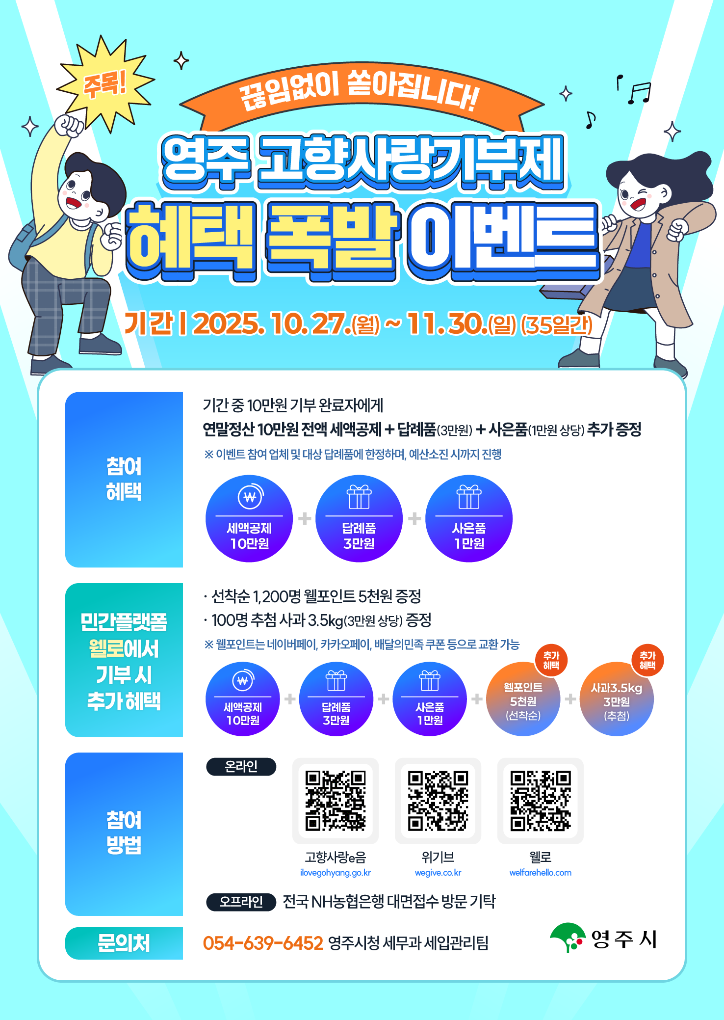 잘 선택한 기부 한 번으로, 좋아하는 지역도 응원하고 세액공제와 답례품까지 모두 챙겨보시길 바랍니다.